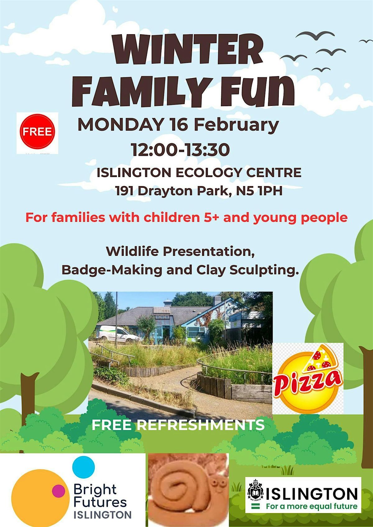 Join us for an in-person, FREE, small event for families with children and young people! Dive into a wildlife presentation, get creative with badge making, and shape your own masterpieces in clay sculpting. Free Refreshments. Suitable for children 5+