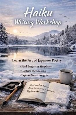 No writing experience is needed. Whether you’re new to poetry or simply looking for a peaceful, inspiring way to spend an hour, you’ll leave with several original winter haiku and a renewed sense of creative confidence. Expect a cozy atmosphere, meaningful reflection, and the joy of turning ordinary moments into art.