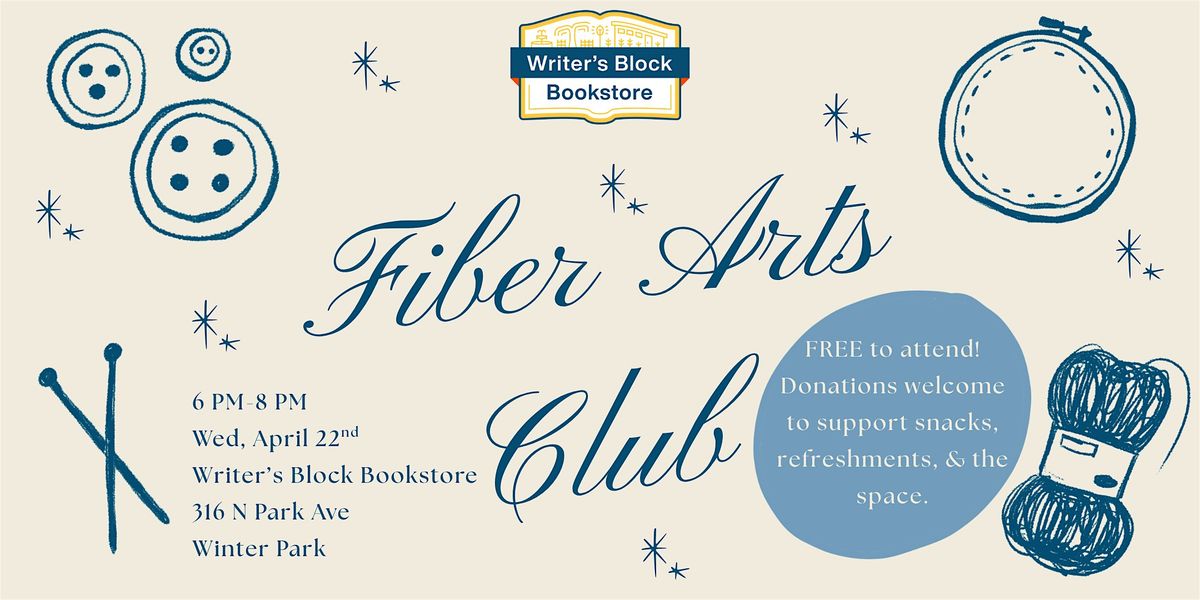Join us for a cozy Fiber Arts Club night! This will be the beginning of a recurring monthly event. Bring whatever project you're working on—knitting, crochet, embroidery, or any other fiber craft—and spend the evening crafting together. This is a relaxed space to help each other with projects, share tips, chat about books, and enjoy good company. If you so kindly choose to donate, your donation will go to snacks, refreshments, and the space for the club to meet while we stitch, chat, and create!