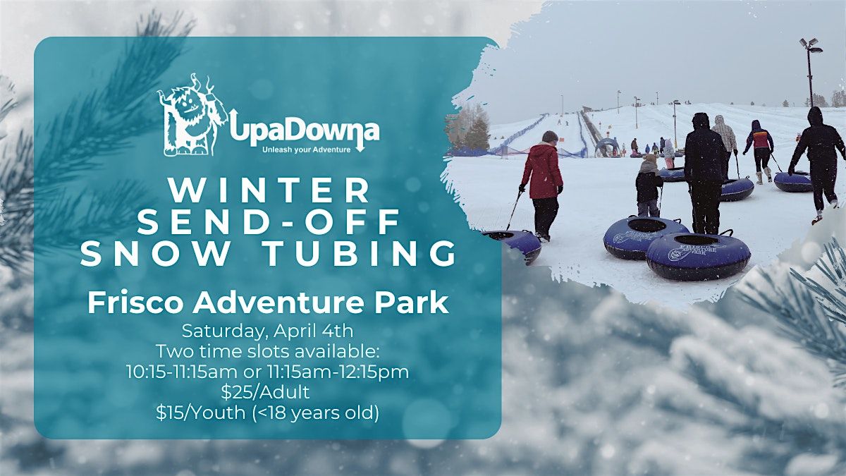 Event Details: Send it with UpaDowna as we head to Frisco Adventure Park in Summit County for our Winter Send-Off Snow Tubing event!