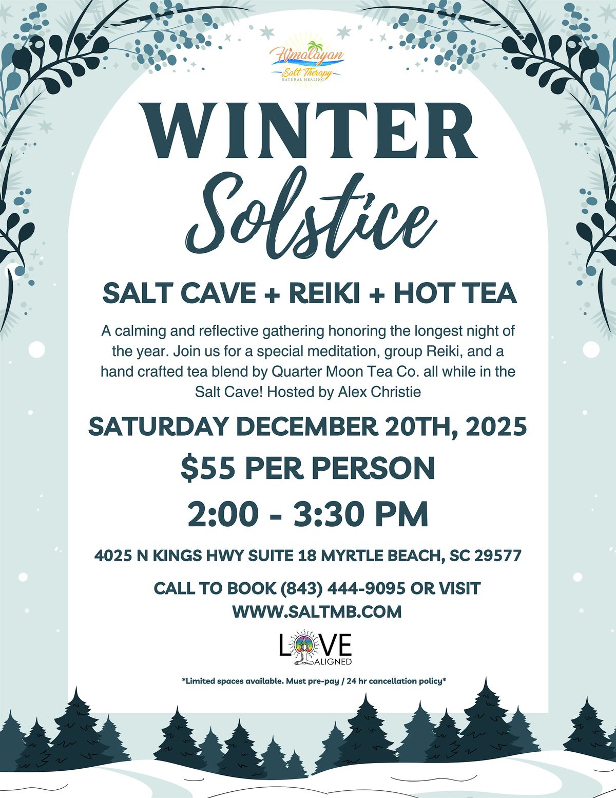 A calming, reflective gathering honoring the longest night of the year! Join us at Himalayan Salt Therapy in Myrtle Beach for this special Solstice event!This event will include:• A guided grounding meditation inside the salt cave