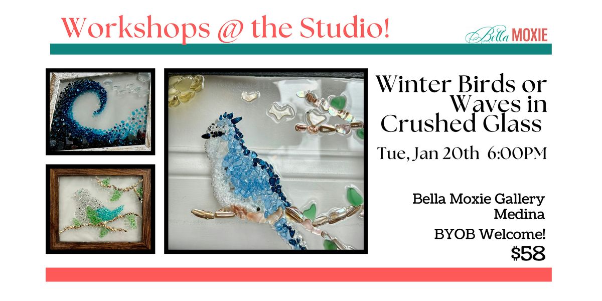 Join us for a lovely evening creating your very own crushed glass & resin frame. From Birds to Waves, Snowmen to Hearts, we have every color for you to use!