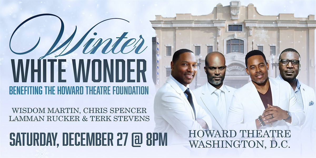 Winter White Wonder is an all white event fundraiser to benefit The Howard Theatre Foundation hosted by Wisdom Martin(WUSA9), Lamman Rucker(actor), Chris Spencer(comedian), and Tarek “Terk” Stevens(producer), this interactive celebration—held during the magical week between Christmas and the New Year—offers a first-of-its-kind major group karaoke experience filled with surprise celebrity guests, musical performances, and an interactive, immersive night you won’t forget for the grown and sexy. This event delivers a one-of-a-kind experience unlike anything the DMV has seen.