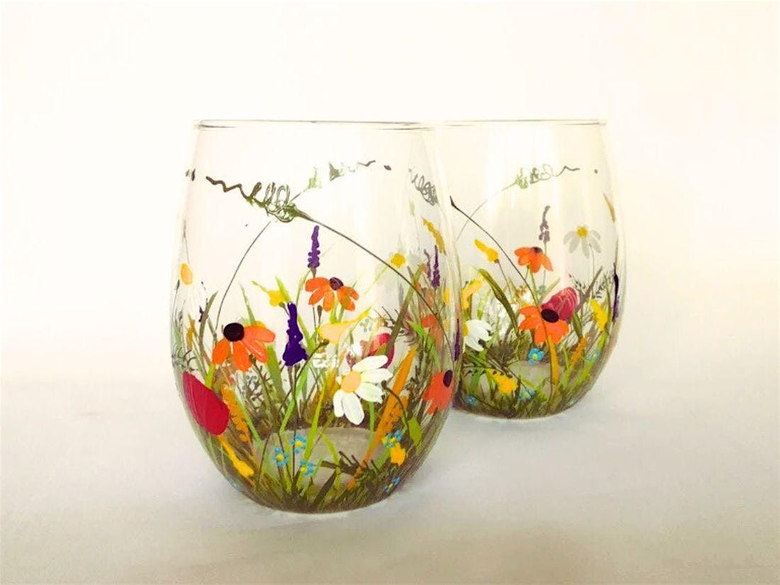 Winter Wine trail - Spring Flowers - Wine glass Class Painting