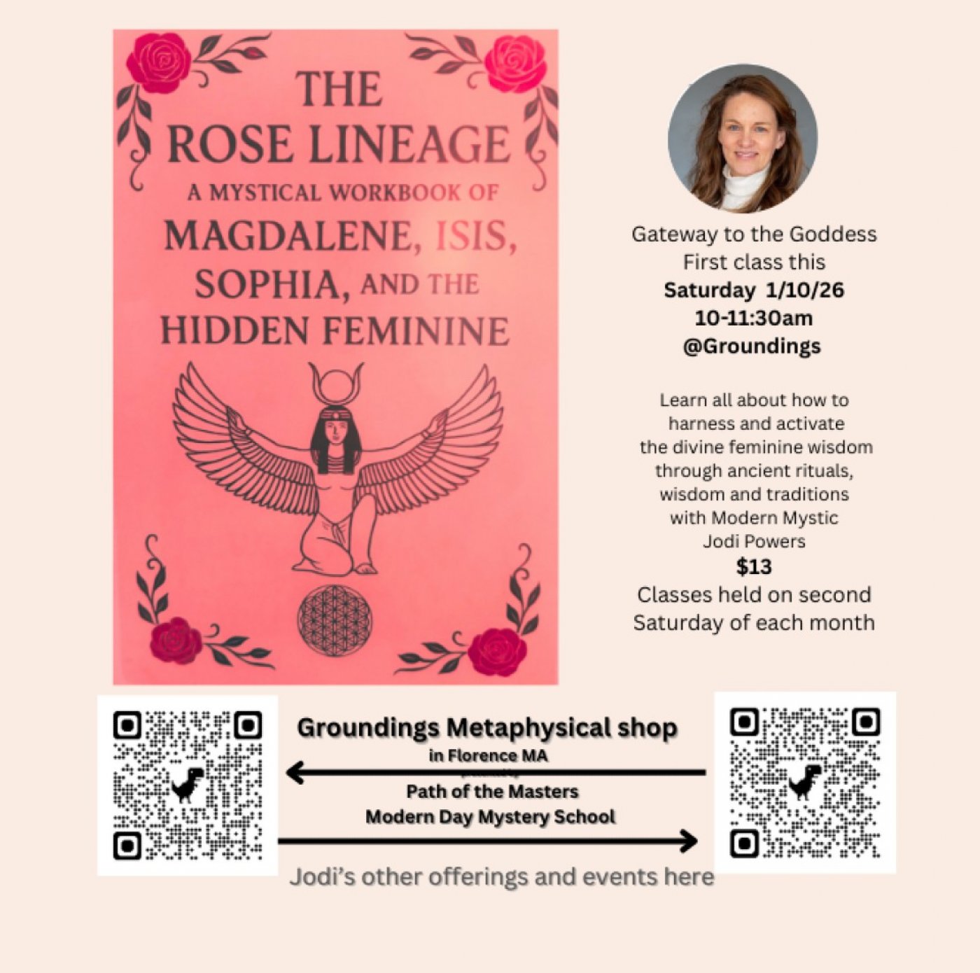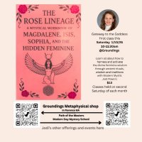Come for one session or commit to the full experience. Only those who complete the entire series are initiated into the mystery school of the divine feminine. Virtual attendance is an option. To register or ask questions, connect with Groundings directly.