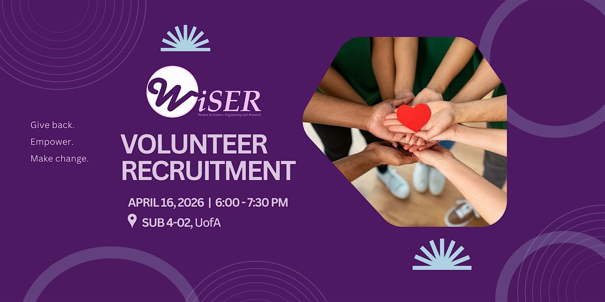 Join us in person to meet the people of WiSER, and learn more about what we do and how we contribute to the community. We will be recruiting volunteers to help with WiSER events, such as our seminars, professional development workshops, and social events, as well as event planners and administrative volunteers. Whether you would like to assist with WiSER events or become involved in program development and community outreach, come stop by to meet members of the team and get involved!