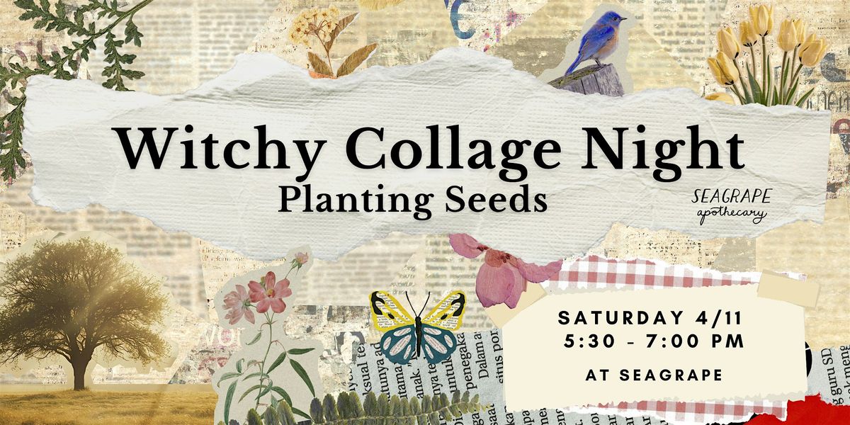 Join us for a monthly in-person Witchy Collage Night at Seagrape Apothecary! Dive into the realm of magic, spells, and self-care with like-minded babes in a cozy and welcoming atmosphere. We'll connect, collage and make new friends.