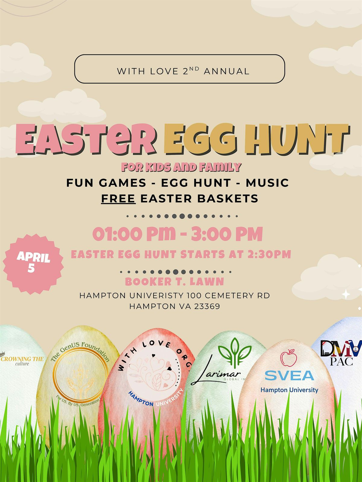 Join With Love Organization for our 2nd Annual Easter Egg Hunt at Hampton University’s Booker T. Lawn! This family-friendly event is open to kids and families in the community and will be filled with fun, laughter, and celebration.