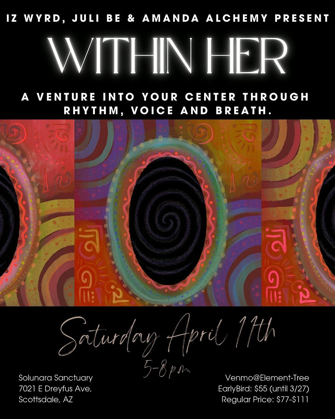 Your hosts Iz Wyrd, Juli Be & Amanda Alchemy come with over 44 years of collective experience and devotion to this work and are so honored to share it with you in this intimate outdoor gathering.