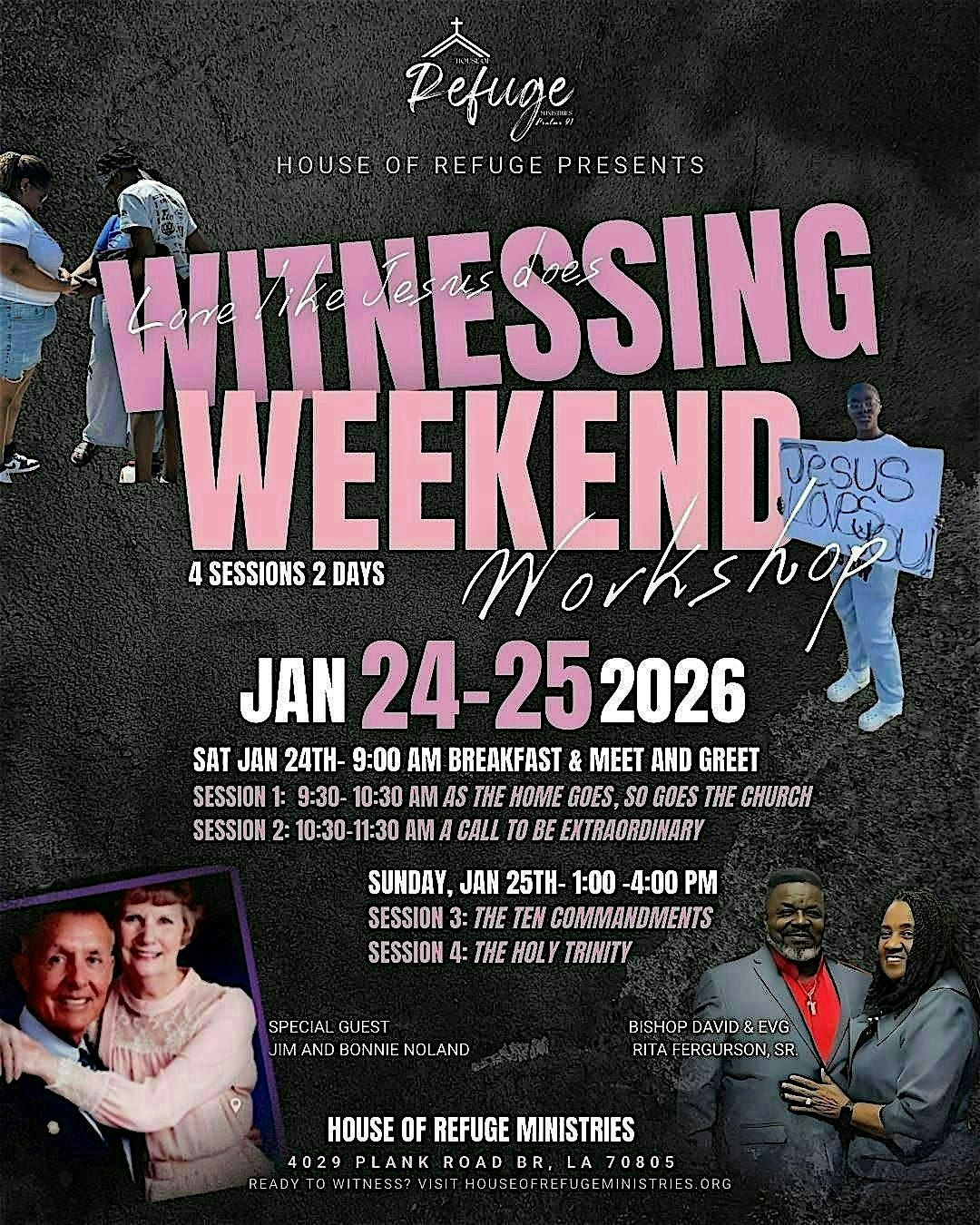 Ready to dive into an awesome in-person experience? Our Witnessing Weekend Workshop is perfect for anyone looking to learn new skills, connect with like-minded folks, and have a blast while doing it. Expect hands-on activities, fun discussions, and a super welcoming vibe. Don’t miss out on this chance to grow and share in a relaxed setting. See you there!