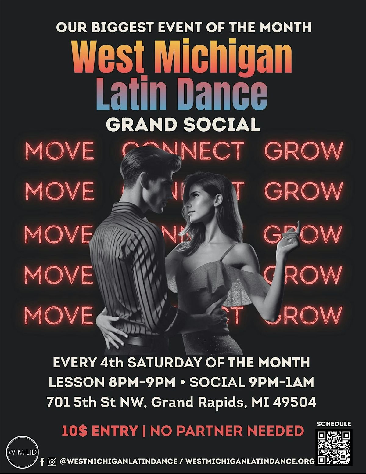 Get ready for a night of salsa, bachata, and community with West Michigan Latin Dance (WMLD)—the heart of Latin dance in Grand Rapids!