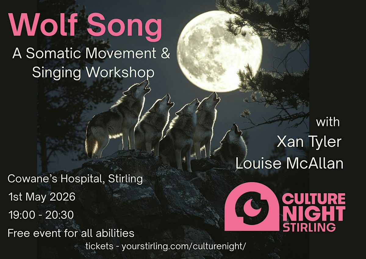 Somatic Health Coach, Louise McAllan and Vocal Coach, Xan Tyler bring together the most powerful elements of their disciplines to create a rich, embodied workshop experience. Inspired by the legend of the Stirling Wolf, this 90-minute session invites you to explore connection through voice, breath and movement.