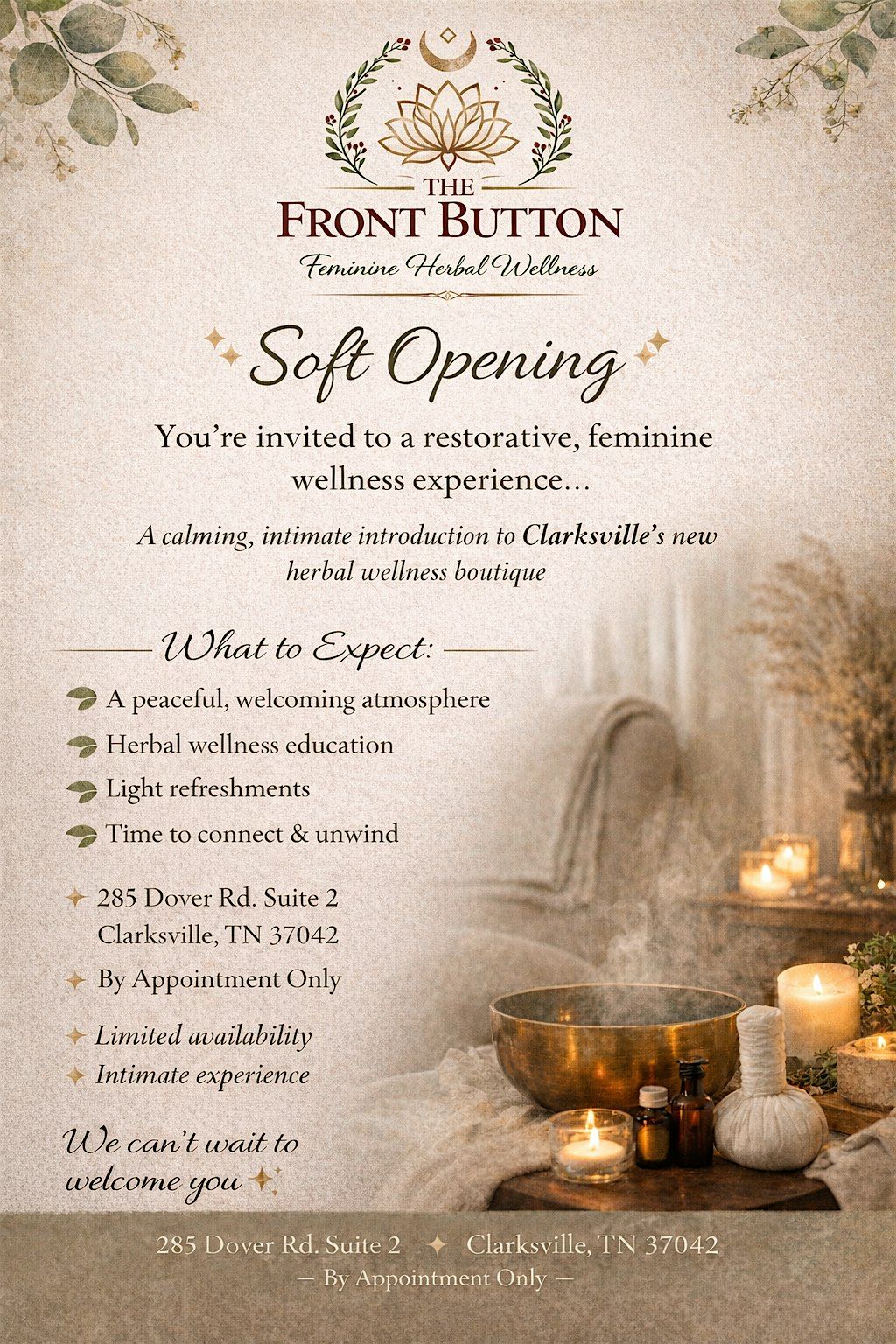 Join us for the Soft Opening of The Front Button by Kristy’s Naturals—a feminine wellness space designed for rest, reconnection, and self-care.