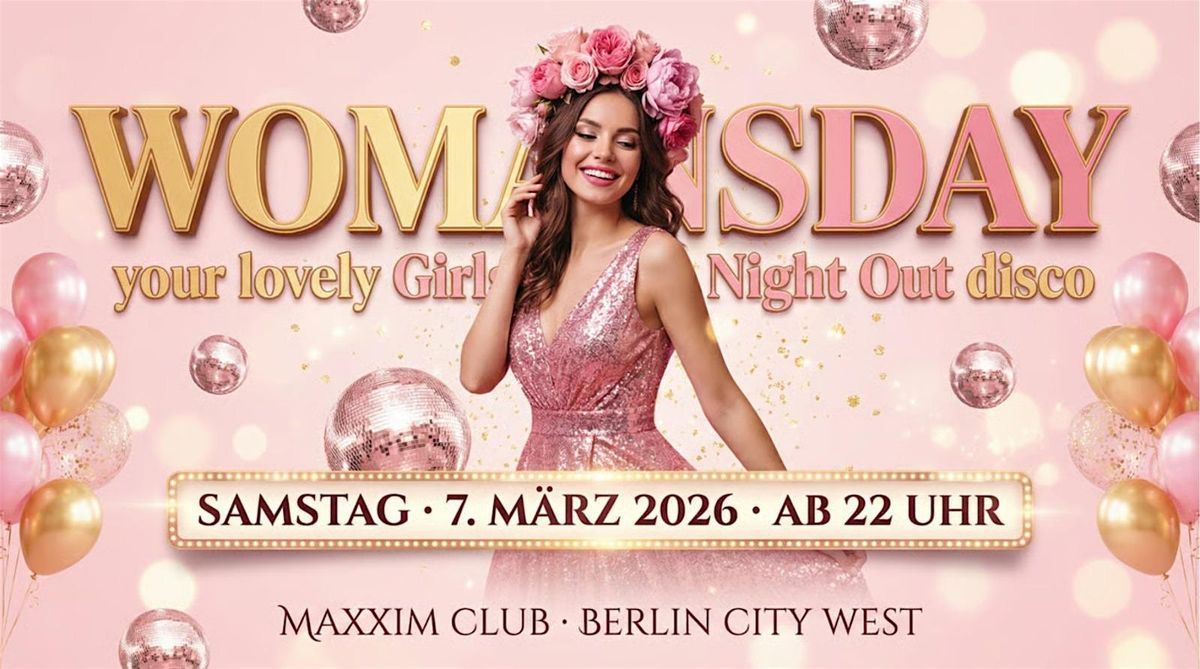 Der WOMANSDAY im MAXXIM CLUB steht ganz im Zeichen von Mädchen-Musik, Girl Power und Songs, die jede kennt, liebt und mitsingt. Freu dich auf die beliebtesten Hits für Frauen – von aktuellen Chart-Lieblingen bis zu zeitlosen Disco- & Dance-Classics, die sofort gute Laune machen und die Tanzfläche füllen. Musik, die verbindet, Erinnerungen weckt und einfach Spaß macht.