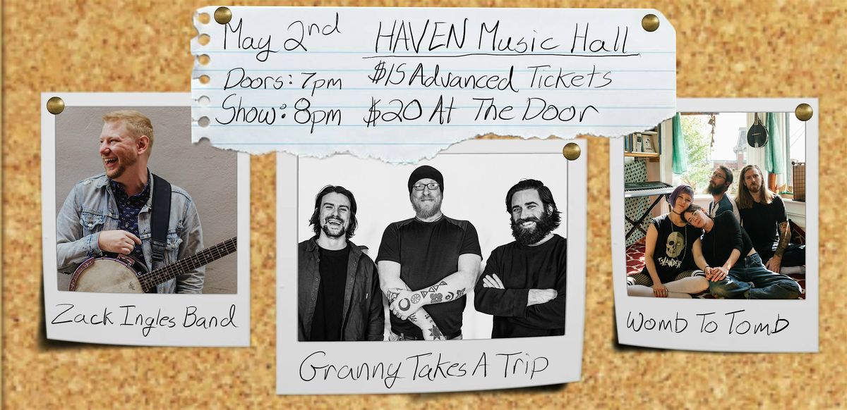 Come out to Haven Music Hall on May 2nd to see Womb to Tomb, Granny Takes a Trip, and Zack Ingles! Doors 7pm/show 9pm. $15 adv/$20 at the door!
