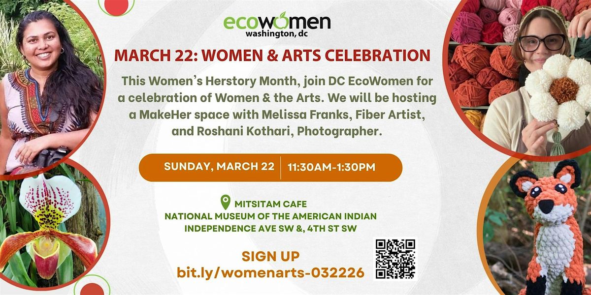 This Women's Herstory Month, join DC EcoWomen for a celebration of Women & the Arts. We will be hosting a MakeHer space with Melissa Franks, Fiber Artist, and Roshani Kothari, Photographer.