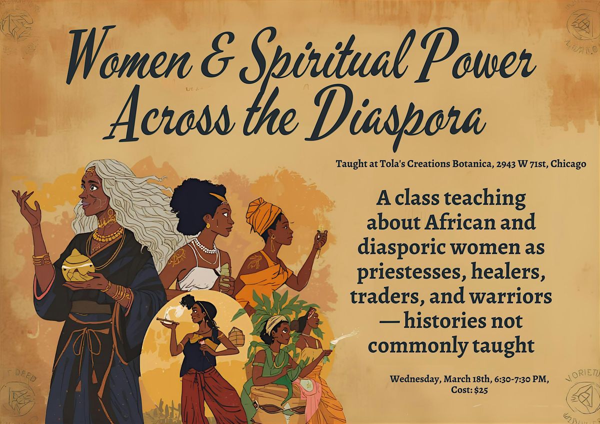 Join us in person to explore the incredible spiritual power of women across the diaspora. This event is all about celebrating strength, stories, and soulful connections that span cultures and continents. Whether you're curious or deeply connected, come share, learn, and vibe with like-minded souls. Don't miss out on this inspiring gathering!