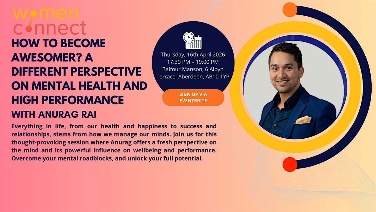 Join us for an exciting event with Women Connect where you'll gain a different perspective on mental heatlth and high performance. Through practical strategies and tools, Anurag will show us how to communicate more effectively with ourselves and others, overcome mental roadblocks, and unlock our full potential!