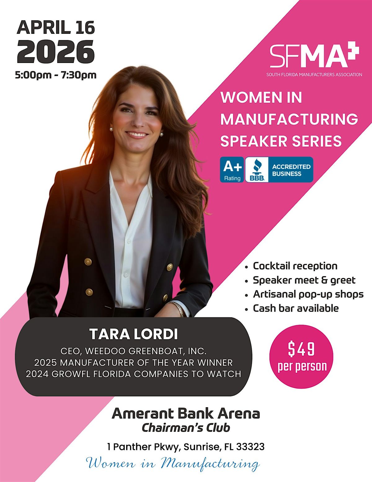 Join the South Florida Manufacturers Association for an exclusive fireside chat with Tara Lordi, a manufacturing leader and trailblazer shaping the future of marine and environmental innovation. This event offers a unique opportunity to hear from one of South Florida’s most impactful voices and connect with professionals committed to advancing women in manufacturing.