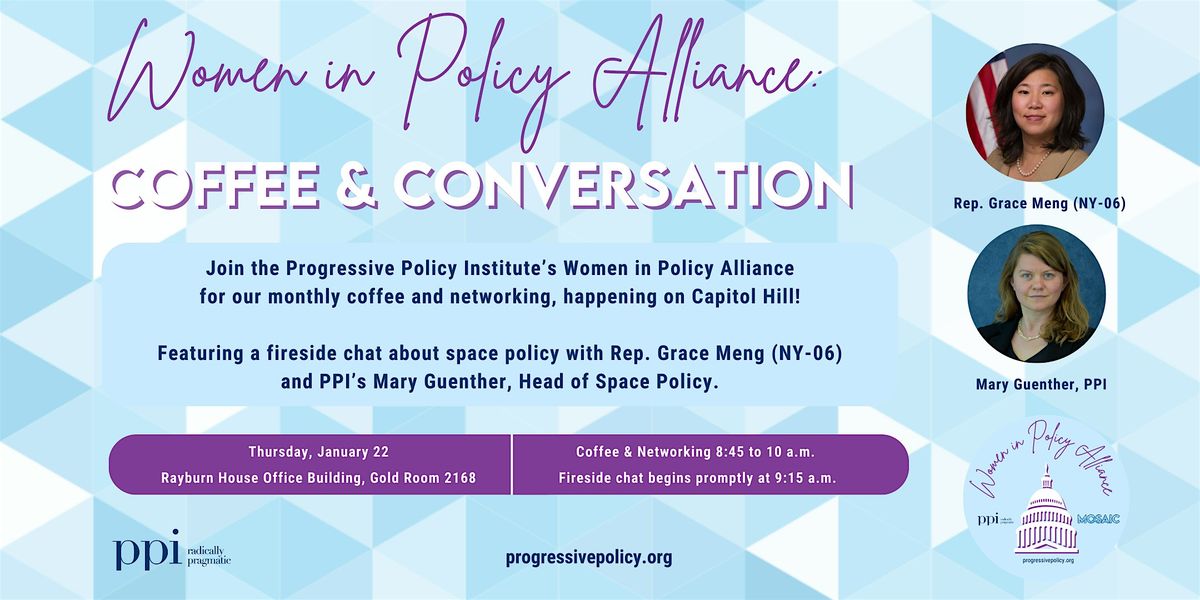 Featuring a fireside chat about space policy with Rep. Grace Meng (NY-06) and PPI's Mary Guenther, Head of Space Policy.