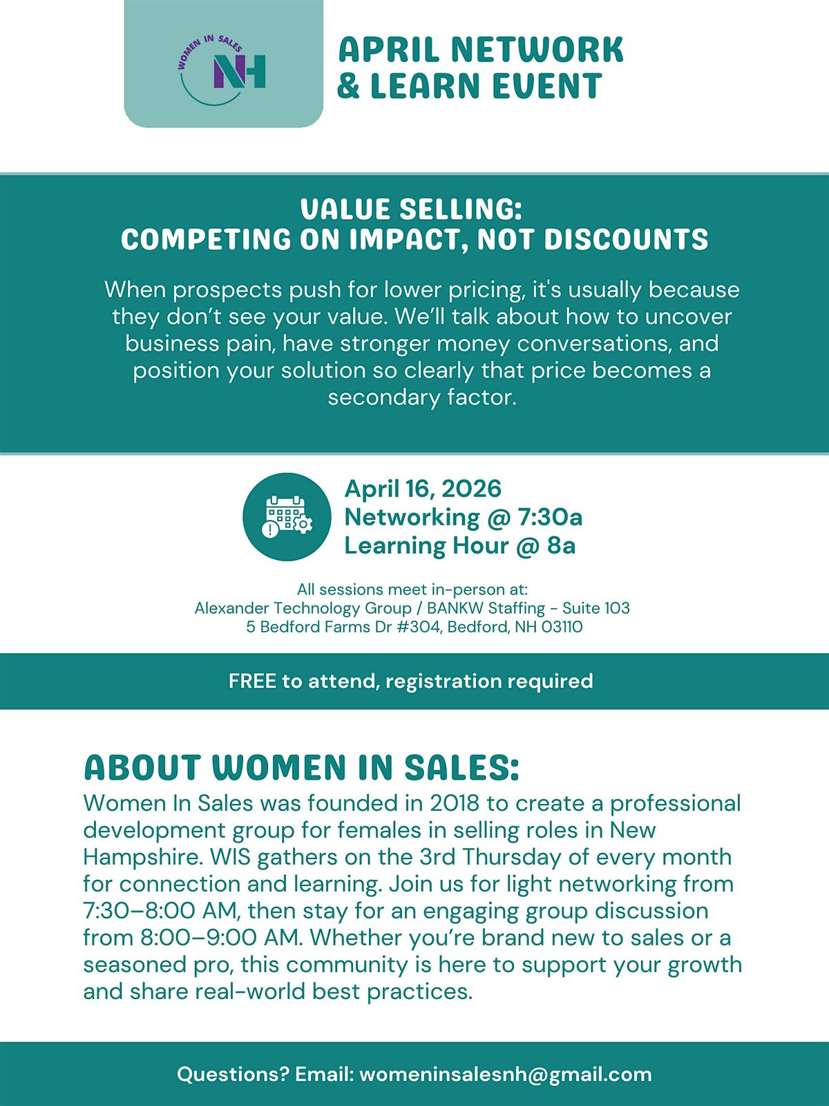 Women in Sales New Hampshire - April 16, 2025 - Value Selling