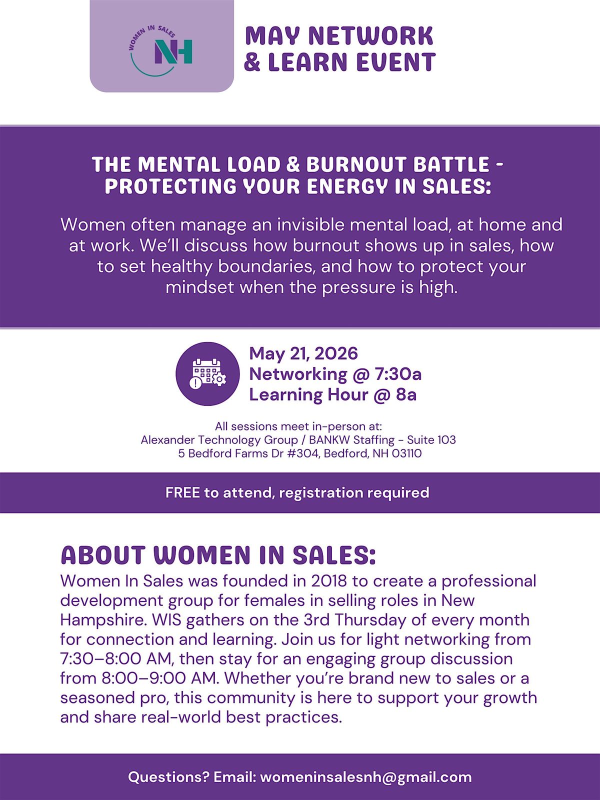 Women in Sales New Hampshire - May 21, 2025 - The Mental Load & Burnout