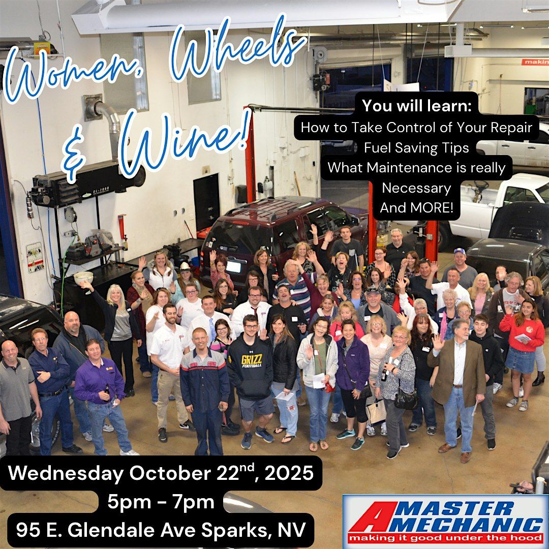 Ladies! Stop by A Master Mechanic for our 2025 Car Care Clinic: Women, Wheels & Wine.