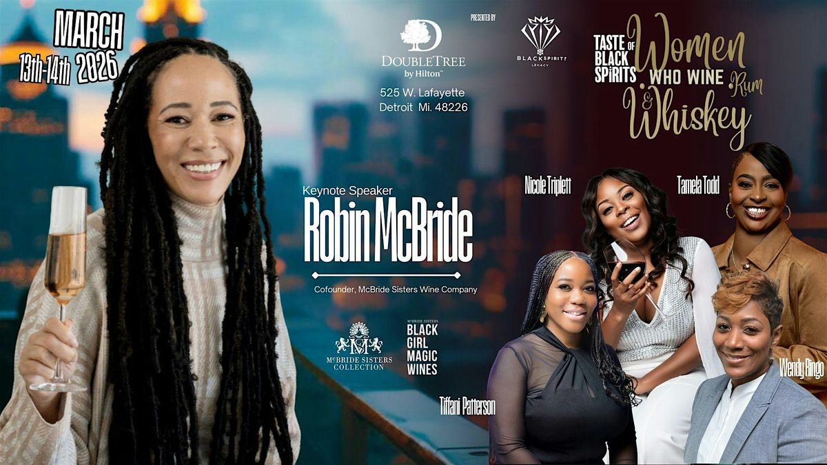 Join us for the WOMEN WHO WINE-RUM & WHISKEY -- Presented by Black Spirits Legacy @tasteofblackspirits with special guest Speaker Robin McBride @mcbridesisterscollection Robin McBride, co-founder of McBride Sisters Wine Company, has dedicated more than 20 years to building her career as an entrepreneur in wine. Together with her sister, Andrea, the duo began as importers of New Zealand wine before evolving into wine producers, innovators, and strategic brand marketers. Join us for an extraordinary two-day event March 13th - 14th, 2026, at the Doubletree Hotel, celebrating the achievements and stories of trailblazing women in the wineries and distilleries across the globe. This event aims to empower, inspire, and connect women who share a passion for the wine and spirits industry. Event Schedule Day 1: March 13th Time:5 PM - 9 PM Activities: panel discussions with guest Tamela Todd @sipnreadbookbar , Wendy Ringo @sugahplease , and @gailpmason ,followed by a networking dinner with spirits industry professionals. Day 2: March 14th Schedule: Morning sessions with additional speakers @kizzmylegacy and more Panel 2. Keynote Brunch with Robin McBride ( @mcbridesisterscollection / Black Girl Magic Wine followed by our signature Grand Tasting Exhibition showcasing over 20 Black women-owned brands. Click on the link in our bio for tickets. #CollectiveBehavior #tellsomebody #everyday #detroit #blackinaction #wine #wineloversunite