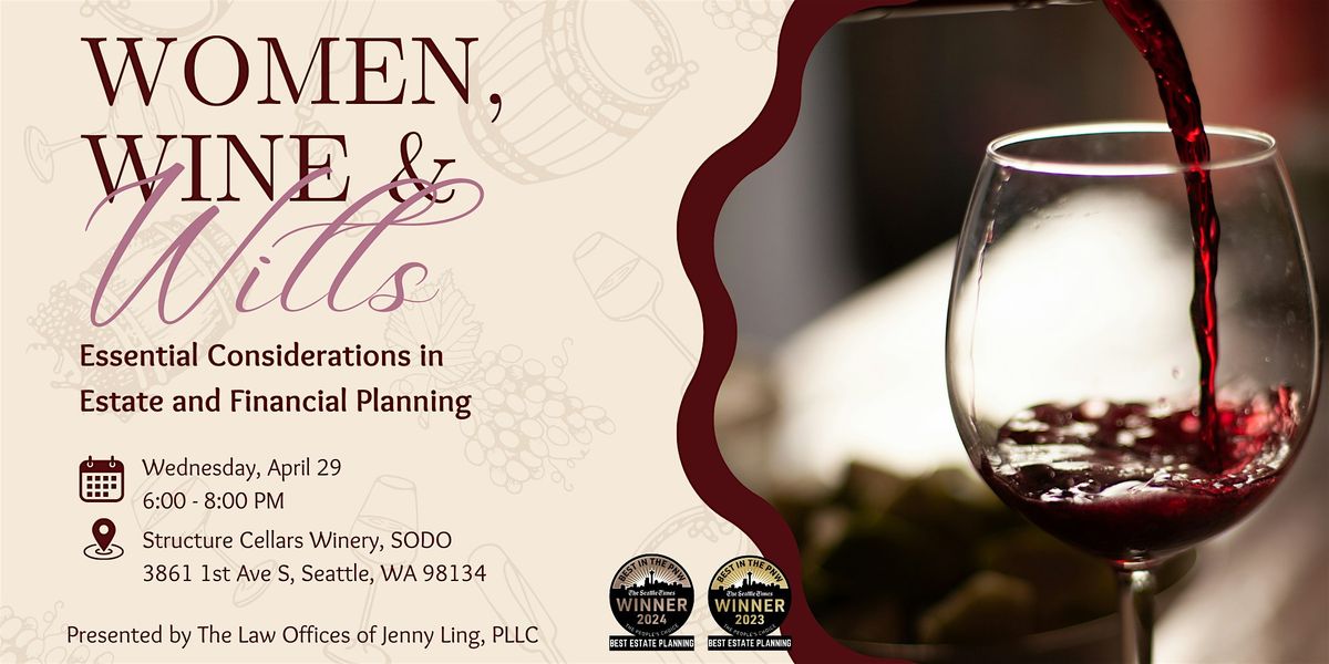 Enjoy a glass of wine and meet Jenny Ling, an experienced estate planning attorney, and Kam Sahota-Middleton, Wealth Advisor at Snider Financial Group, at this FREE, in-person event at Structure Cellars Winery + Tasting Room in SODO.
