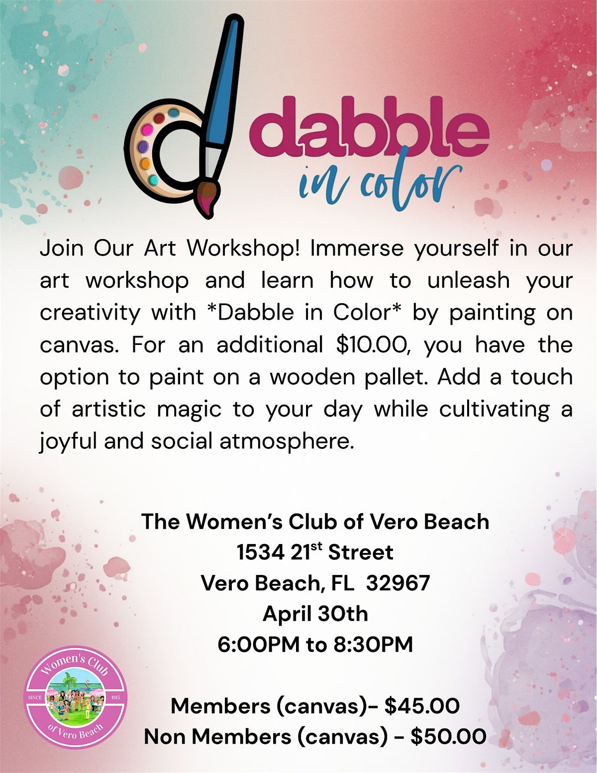 Ready to unleash your creativity with DABBLE IN COLOR? Come meet fellow art lovers and get hands-on training painting a fun project at our in-person workshop. Whether you're a beginner or a seasoned artist, this is the perfect chance to relax, learn new techniques, and enjoy a friendly, supportive vibe. Don’t miss out on a day filled with color, inspiration, and plenty of laughs. See you there!