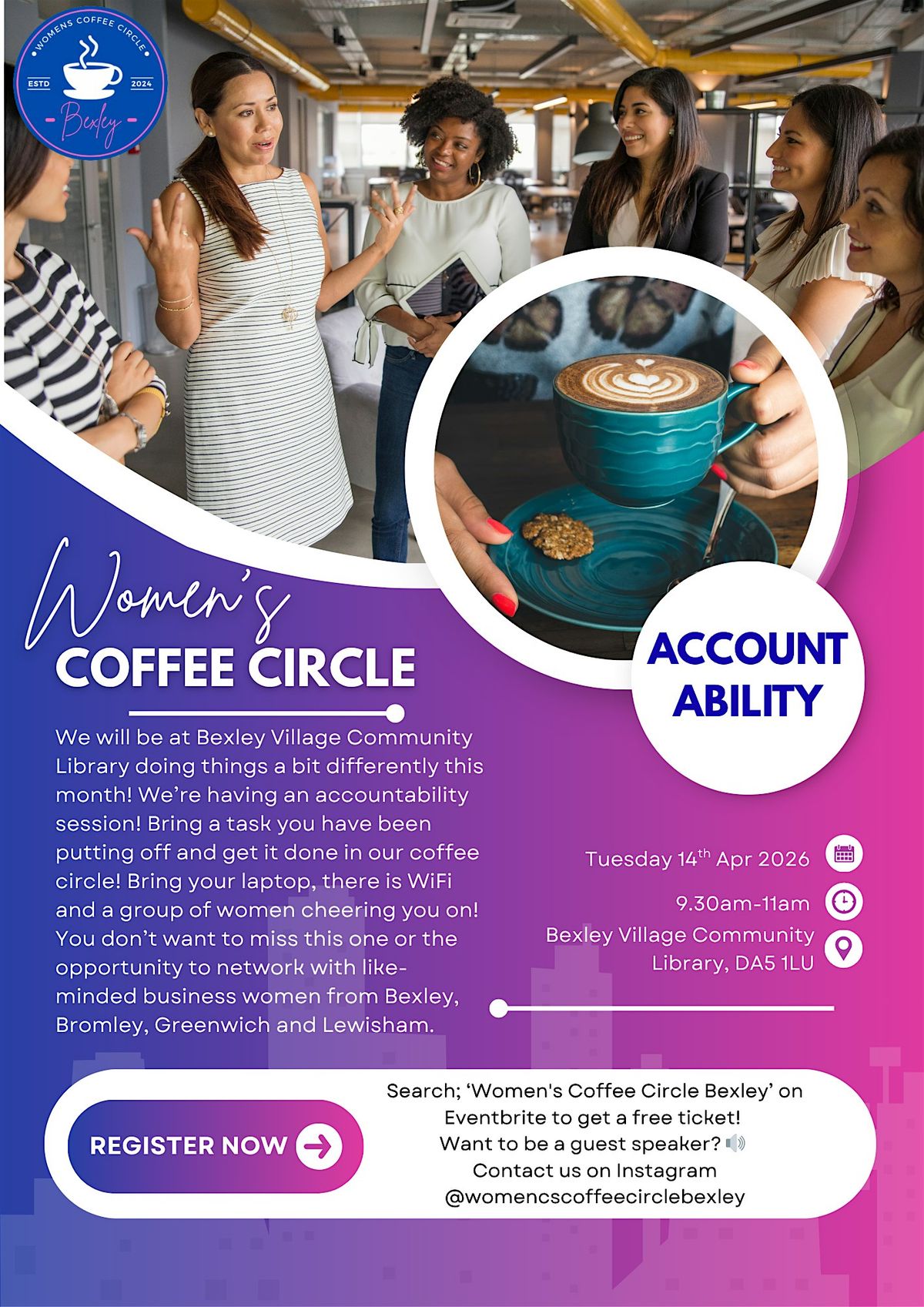 We are at Bexley Village Community Library, please bring a £1 for your coffee!