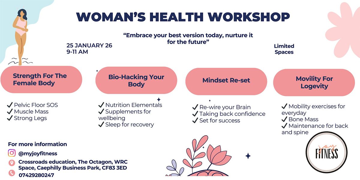 Join us for a fun and hands-on in-person Women's Health Workshop where you'll learn all about taking care of your body and mind. It's a relaxed environment perfect for sharing tips, asking questions, and connecting with others. Don't miss out on this chance to boost your health knowledge and meet awesome people in person! The session includes 1 hour session of strength and mobility exercises exclusively designed for women.