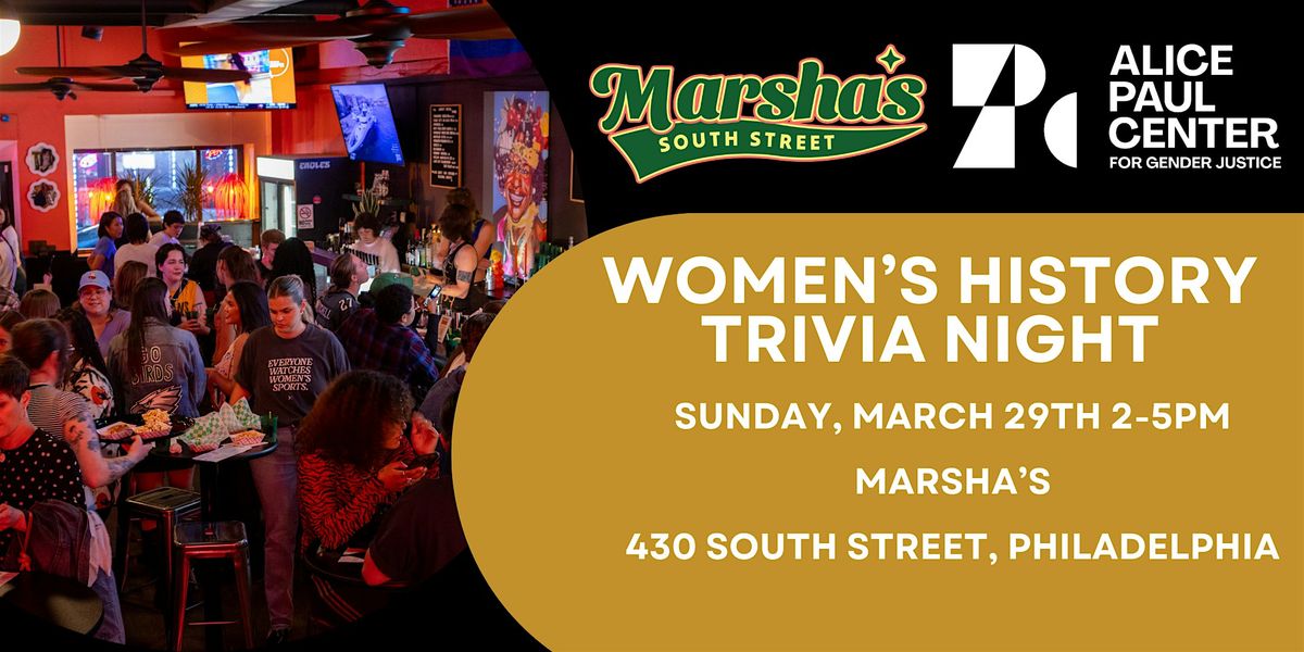 Join the Alice Paul Center for Gender Justice for our first ever Women’s History Trivia Night at Marsha's Bar on South Street.