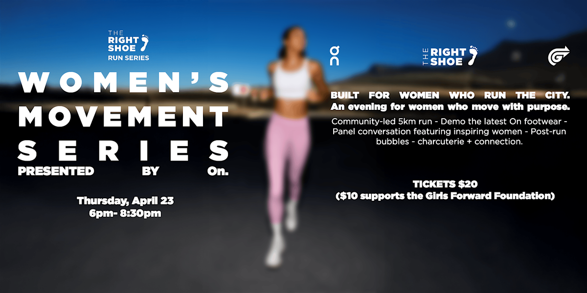 The Right Shoe Run Series is kicking off the season with an evening designed for women who move with purpose. The Women's Movement Series presented by On brings together community, conversation, and kilometres β celebrating every woman who laces up and shows up.