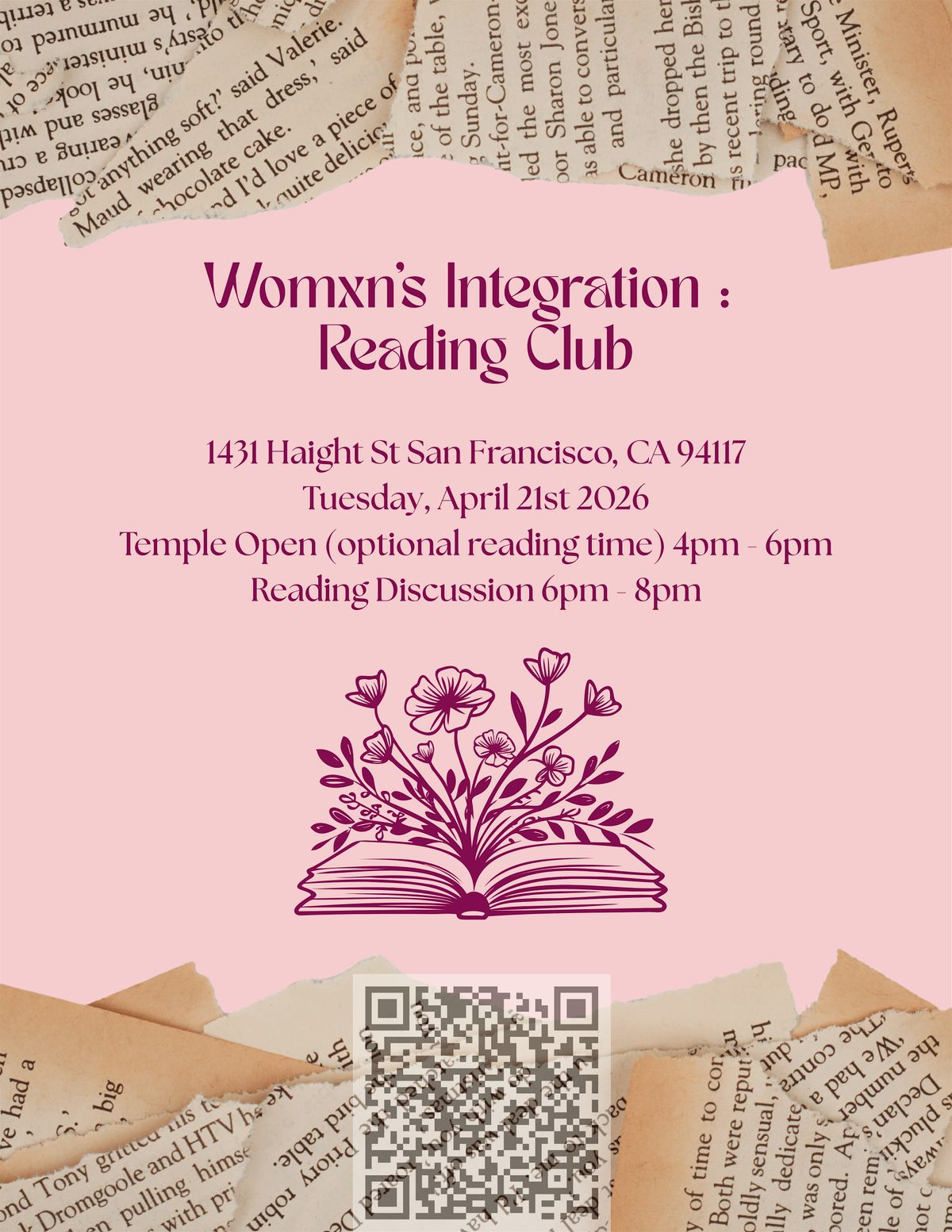 Welcome to Womxn's Integration: Reading Club at The Temple! Join us for an engaging and thought-provoking discussion on various literary works by womxn authors. This in-person event is a fantastic opportunity to connect with like-minded individuals in a cozy and welcoming setting. Bring your favorite book or just come ready to listen and share your thoughts. Let's celebrate the power of storytelling and female voices together.