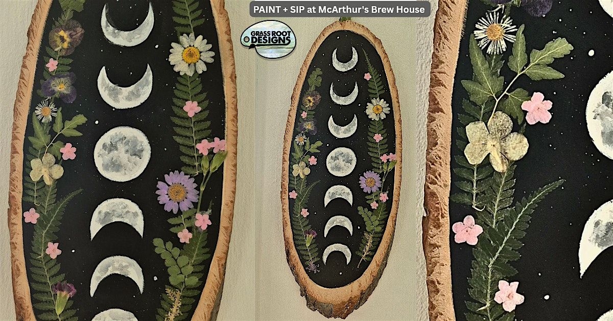 Wood Slice Pressed Flower Moon Art | Paint + Sip at McArthur's Brew House