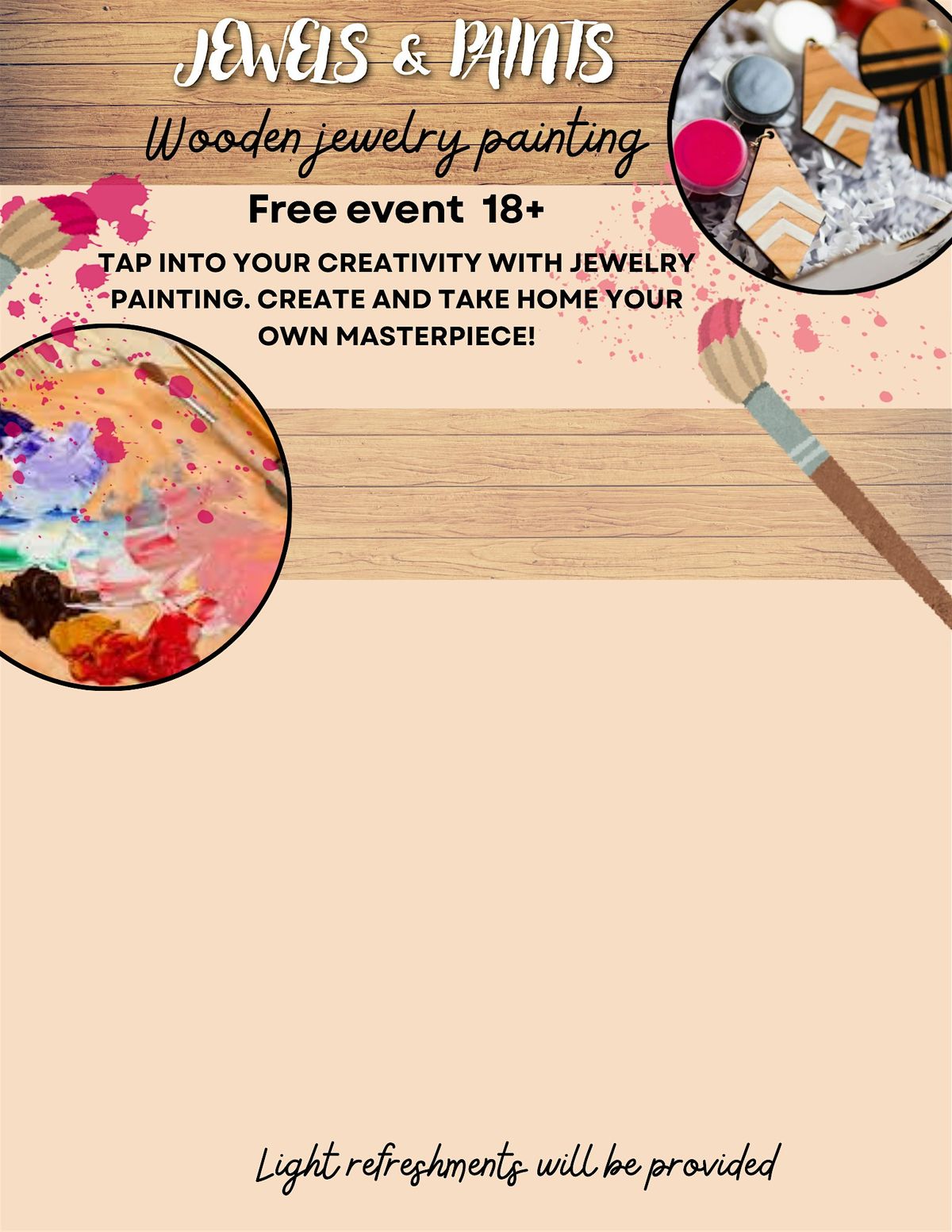 Come join us for a fun and creative evening of wooden jewelry painting, where you will be designing your own wearable wooden earrings. Your instructor will guide you through creating your first design, then you will have the opporunitiy to unleash your creativity and create your own! This in-person event will take place at Chickie & Co boutique - 801 N Howard St. Please ring the doorbell at the front of the store when you arrive. Light refreshments will be provided along with a small give away. Don't miss this opportunity to make beautiful wooden earrings pieces to wear or gift to loved ones. See you there!