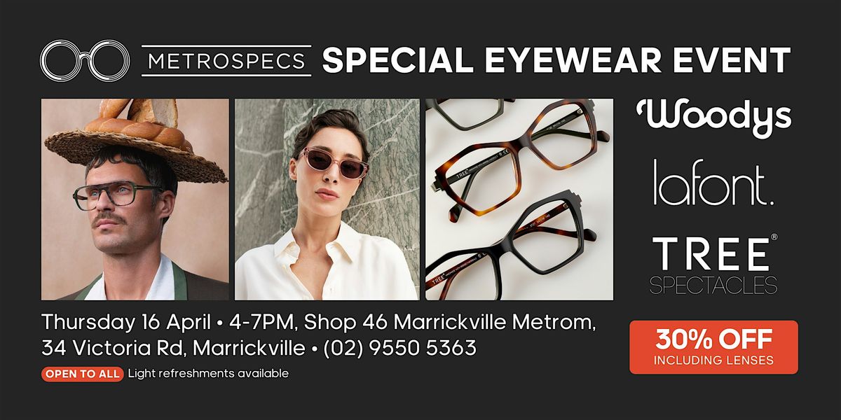 We are excited to showcase Woodys, Lafont, Tree Spectacles eyewear with a VIP event at MetroSpecs on Thursday, 16 April, 4pm - 7:00 pm.