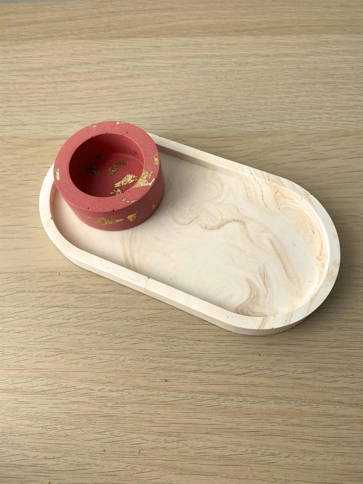 Je kiest je eigen kleuren en stijl: speels terrazzo, elegante marmerlook of een luxe touch met bladgoud – alles is mogelijk! Onder begeleiding van Pascale van giet je een ovale schaal én een waxinelichthouder, helemaal naar jouw smaak.