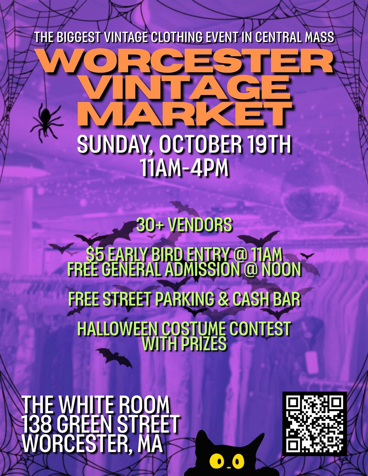 On Sunday, October 19th, the Worcester Vintage Market returns to The White Room for the third time! We’ll be back with 30+ vendors, a cash bar, and a Halloween costume contest! 🎃👻