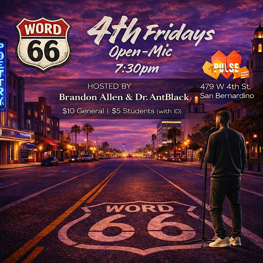 Born in San Bernardino and inspired by the spirit of Route 66, this soulful open mic brings together poets, spoken word artists, emcees, storytellers, singers, and community voices who speak with heart and intention.