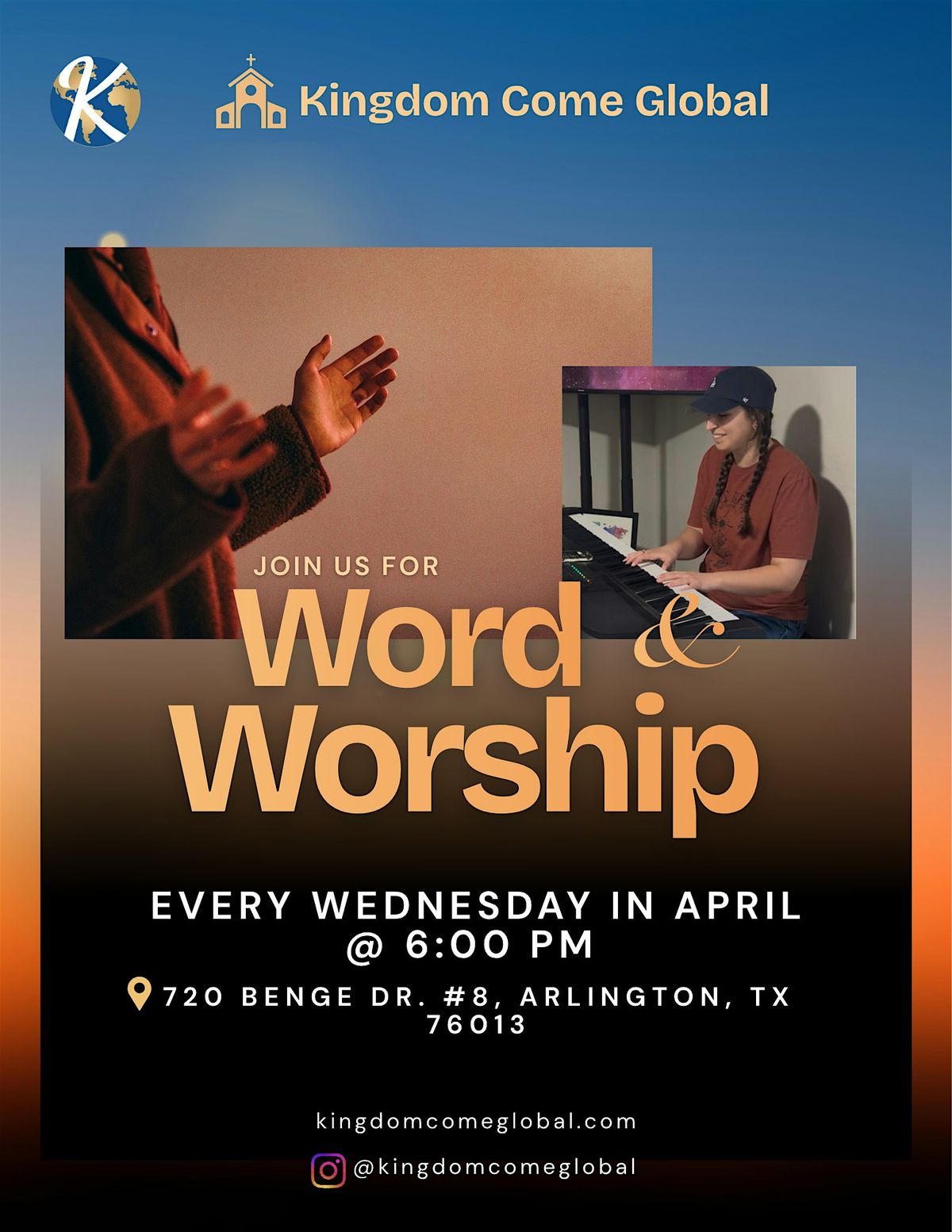 Come, experience a refreshing evening of worship, encouragement, and community at Kingdom Come Global Church.