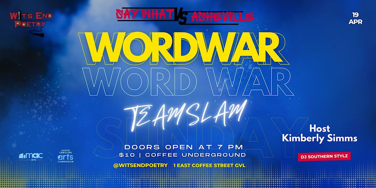 This high-energy, poetry slam is TEAM bouts featuring powerful voices from Asheville vs Greenville Slam Team Say What?! Host Kimberly Simms.