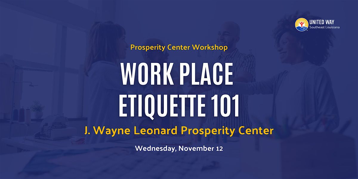 oin us for "Workplace Etiquette 101," a free session designed to help you master the dos and don'ts of professional environments. Learn how to communicate effectively, build respectful relationships, and create a positive impression at work.
