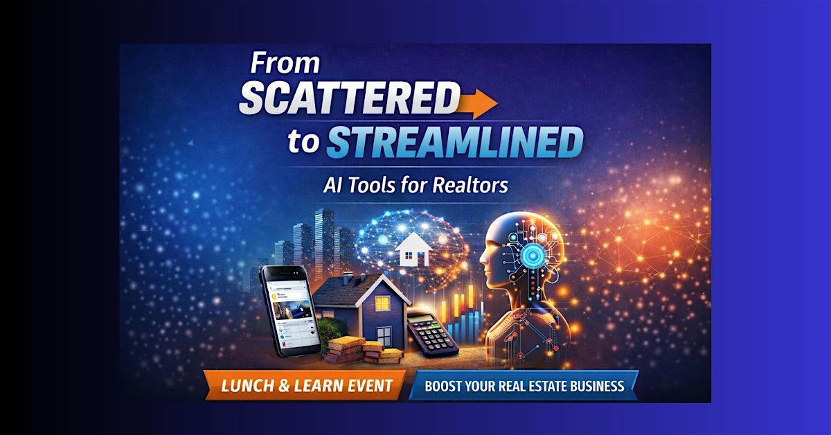 Join us for a high-impact Lunch & Learn designed to show Realtors how to simplify their business, modernize their brand, and use AI and smart tools to better serve buyers, sellers, and investors.
