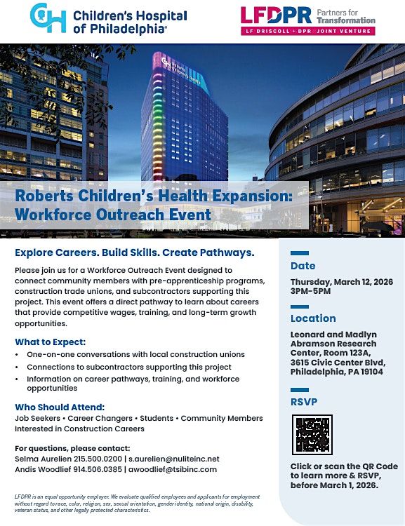 LFDPR CHOP Roberts Children’s Health Expansion: Workforce Outreach Event