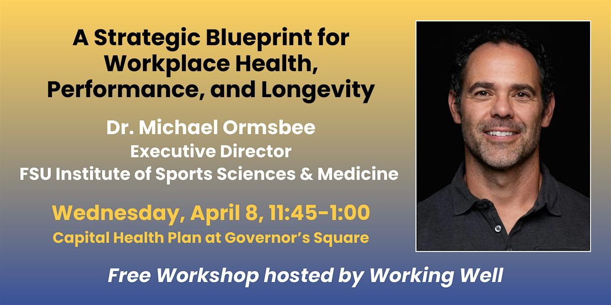 Join Working Well and Dr. Michael Ormsbee, Executive Director of FSU's Institute of Sports Sciences & Medicine, to learn how to implement a strategic blueprint for workplace health, performance, and longevity.