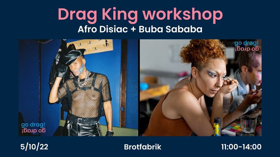 With Afro Disiac + Buba SababaDrag Kings have often been underrepresented in mainstream drag platforms, yet the essence of kinging, claiming masculine performativity, is a powerful tool in the emancipation from patriarchy. In this workshop Drag King legends, Buba Sababa and Afro Disiac, will teach the participants about all things King.