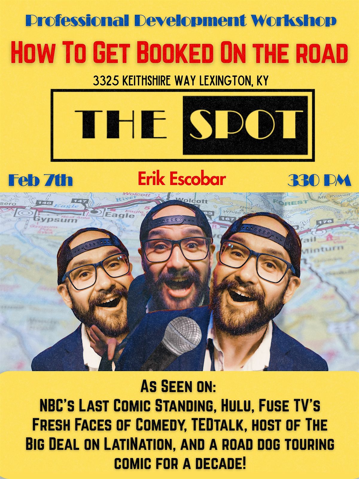 How To Get Booked On The Road is hands-on comedy workshop led by touring comedian and educator Erik Escobar, designed for stand-up comedians and performers ready to take their careers beyond local mics and showcases. In this practical, strategy-driven session, Erik breaks down how to move from local shows to paid road work at comedy clubs, colleges, and one-nighters. Drawing from years of touring experience, he shares proven tips on securing bookings, building positive and effective relationships with bookers, marketing yourself effectively, maximizing income on the road, and avoiding common mistakes that cost comedians time and opportunities. This workshop is built to help performers save months—if not years—of trial and error and walk away with clear, actionable steps toward sustainable touring.