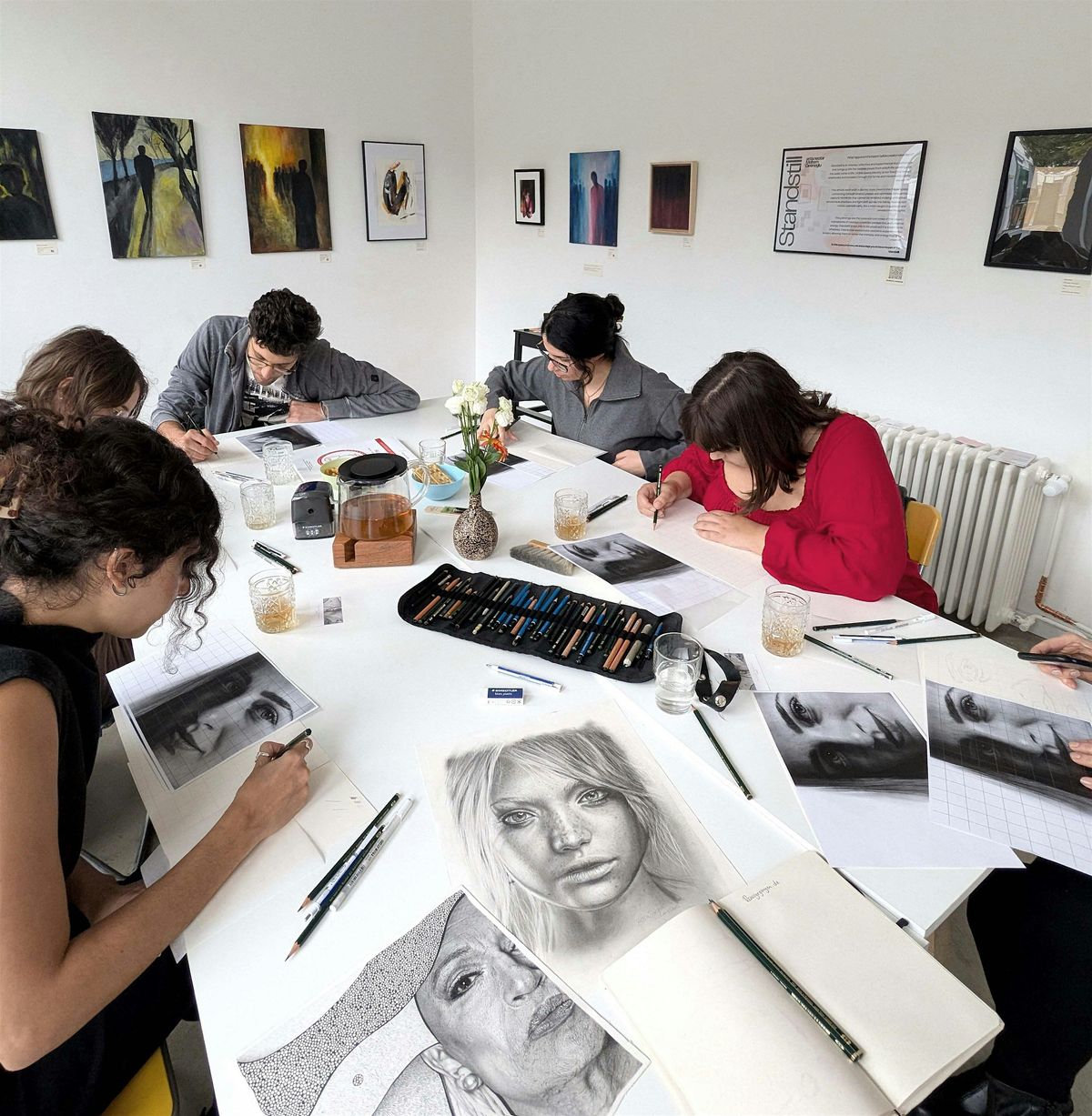 While drawing, we’ll enjoy some tea. From time to time we will have short breaks, as drawing can be quite intense. Between the first and second parts of the workshop, we’ll take a longer break. It'll be the perfect moment to connect, share a cup of coffee and a slice of cake together.